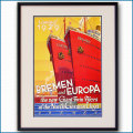 ● 1929年 北ドイツロイドライン 客船ブレーメンとオイローパのポスター 精密レプリカ額入りジクレーアート