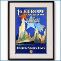 ● 1932年 ユナイテッド・ステーツ・ライン 客船ワシントン・マンハッタンのポスター 精密レプリカ額入りジクレーアート