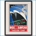 ● 1932年 イタリアンライン 客船レックスとコンテ・ディ・サヴォアのポスター 精密レプリカ額入りジクレーアート
