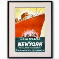 ● 1937年 北ドイツロイド 客船ブレーメンのポスター 精密レプリカ額入りジクレーアート