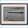 ● 1986年 客船クイーンエリザベス2と自由の女神の写真 額入りジクレーアート
