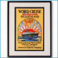 本作は1922年に始まる世界一周クルーズを大型客船で行う口開けとなった1925年から1926年にかけて133日間の旅程で催行されたレッドスターラインの客船ベルゲンランドによるワールドクルーズのポスターです。ベルゲンランドのワールドクルーズ以前は、各船社の旗艦が使用されるには至らず、船会社も代理店も市場を瀬踏みする感がありましたが、アメリカンエキスプレスとレッドスターライン(恐らくは親会社たる海運トラストIMMの意図も強かったでしょう。現に本作にはInternational Mercantile Marineの社名も入っています)は一気に当時としては大ぶりな旗艦のワールドクルーズへの投入を決断しました。このクルーズは大成功で、461名の船客で催行したクルーズの運賃売り上げは200万ドルに達したといわれ、大型客船の冬季クルーズへの投入は、やりようによっては採算性の高い航海ツアーであることを証明しました。