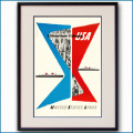 例えば、相当年季の入ったアートオークションハウスのオークショナー達も作者不詳とクレジットするUSL・ユナイテッドステーツラインのポスターです。左上には「Schlo haw」と読むことのできるサインが入っています。明確なことは申し上げられませんが、一度だけ本作の作者に関する記述を読んだことがあり、「Schlo haw」なる人物はレスター・ビールのアシスタントを務めていた女性だったと記憶しています。(確か、学生だったように憶えています。その記述がどこにあったものか定かでなく、残念ながら再度調べることが叶いませんでした) レスター・ビールは1903年生まれ、1930年代に星条旗とその色、赤と青と白をモチーフとする写真コラージュ(アメリカではフォトモンタージュと呼ばれる)の個性的な技法で名をあげ、以後、生涯を通じてアメリカのモダングラフィックデザインの第一人者の評価を得ました。戦後になると、モチーフの星条旗の色を矢印に置き換えた記号で訴求する見事な手法を駆使します。1952年の客船ユナイテッドステーツ就役の際には、客船ユナイテッドステーツ、客船アメリカ、USLのキャッチコピー名義でそれぞれ1枚、都合3枚のポスターを制作しました。この3枚のポスターに加え、当時のUSLの印刷物の殆どはレスター・ビールによってデザインされましたが、ポスター及びプレイカードには戦後に得意とした星条旗カラーモチーフの矢印が大胆に使用されていました。本作は、戦前のビール作品を彷彿させる写真コラージュが使われています。言い方は変ですが、レスター・ビール作品といった方がピンとくるような作風です。矢印のような明確な意図表現には届いていませんが、アメリカンテーストに溢れるモダンなポスターです。