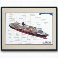 ● 2003年 キュナードライン・客船クイーンメリー2のカッタウェイ断面図 精密レプリカ額入りジクレーアート